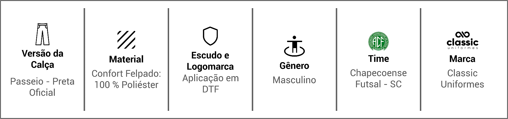 Perfeita para o outono, inverno, treinos ao ar livre ou uso casual, essa calça oferece excelente retenção térmica sem pesar no corpo. O tecido é resistente, fácil de cuidar e mantém a aparência mesmo após diversas lavagens. O design se destaca pelo tom preto e logomarcas aplicadas em DTF, que valorizam o visual e reforçam a grandeza da Chapecoense Futsal.