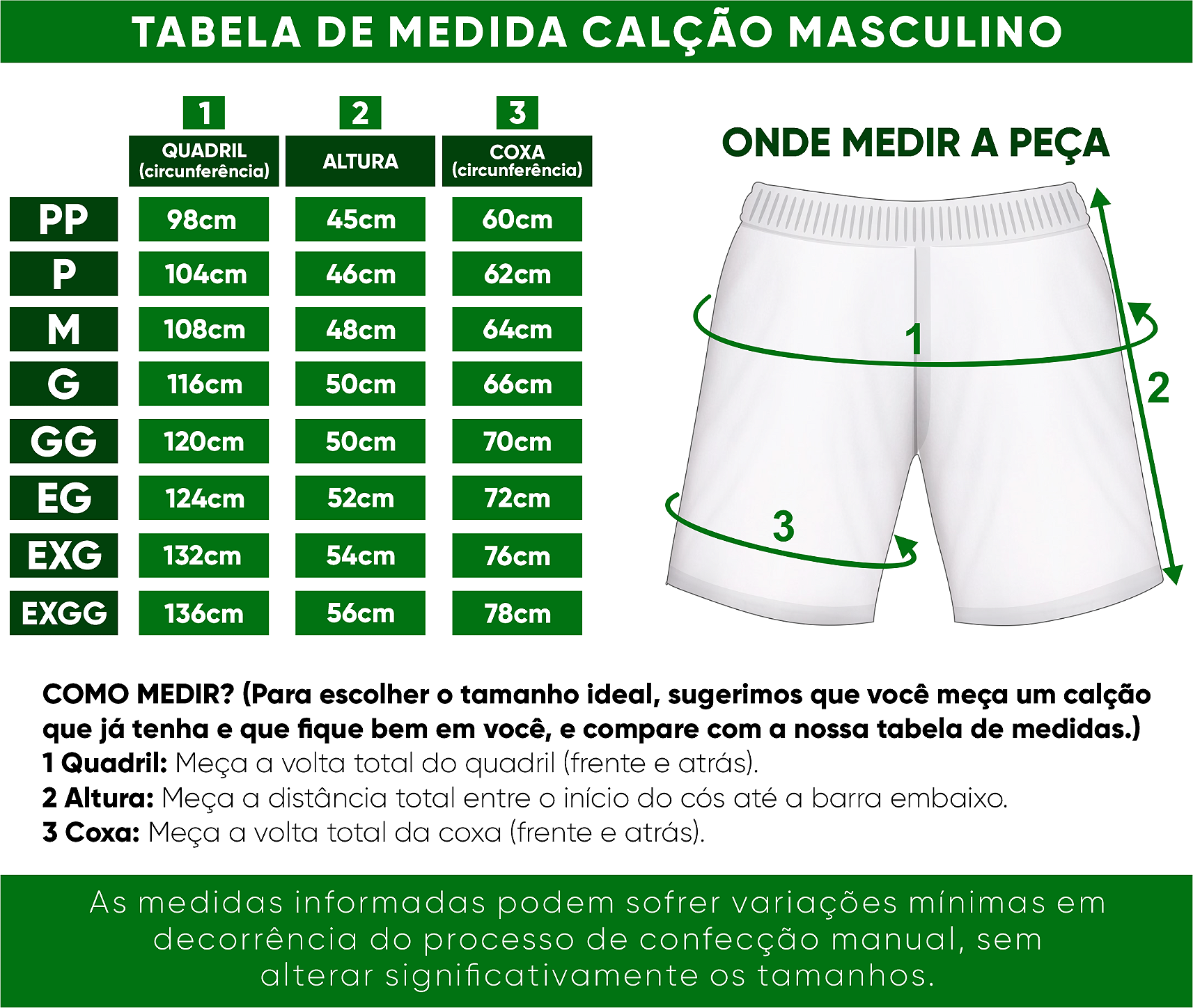 TABELA DE MEDIDAS CLASSIC UNIFORMES
