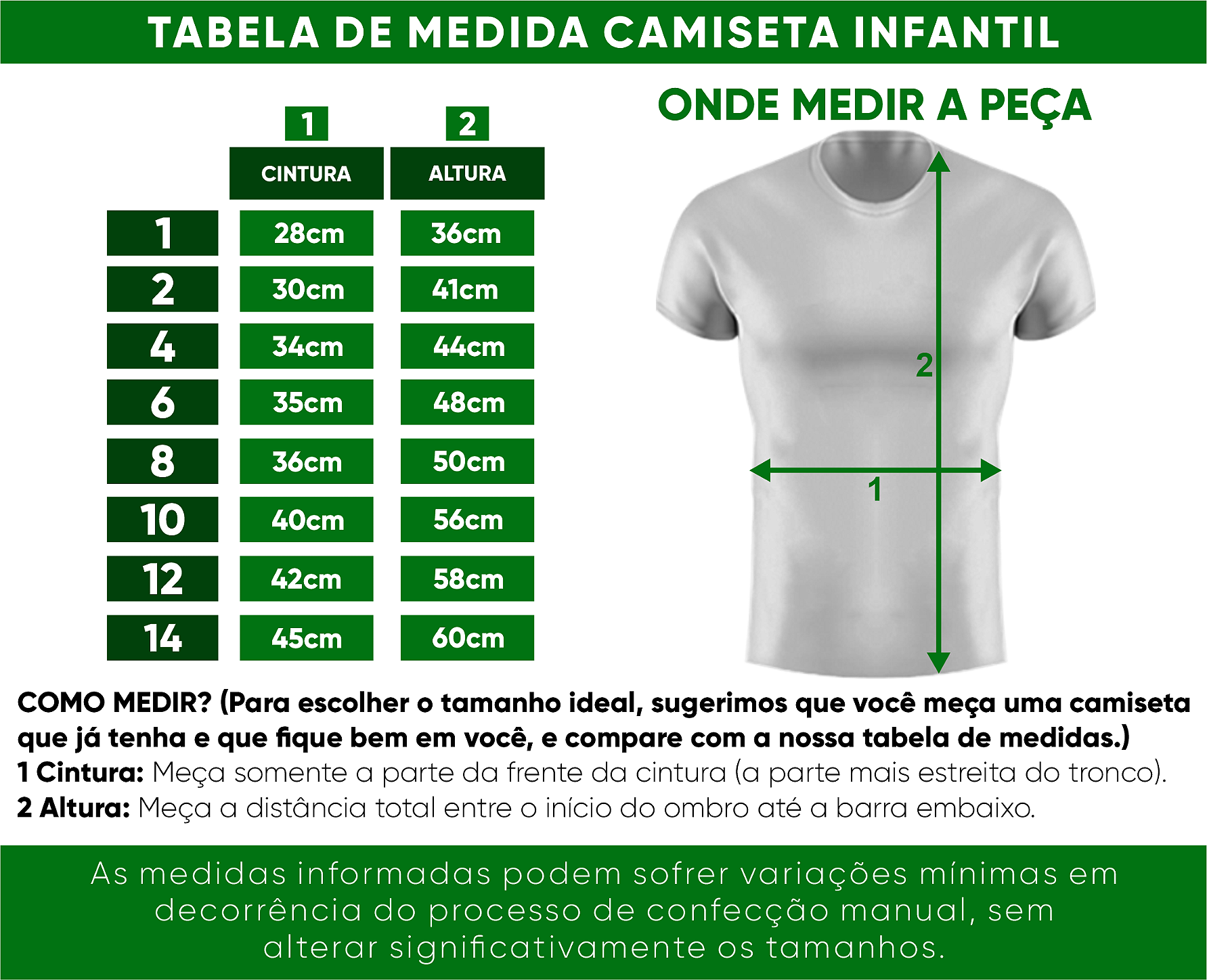 TABELA DE MEDIDAS CLASSIC UNIFORMES