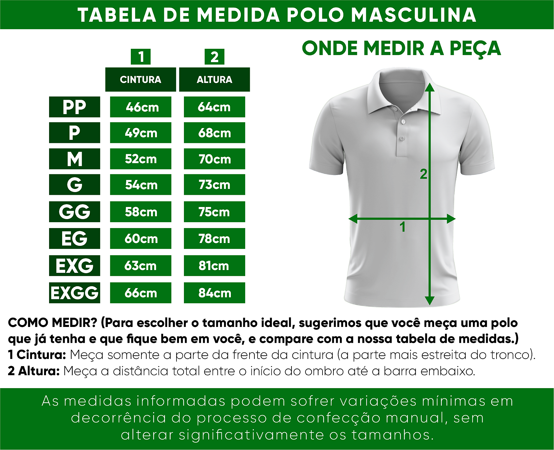 TABELA DE MEDIDAS CLASSIC UNIFORMES